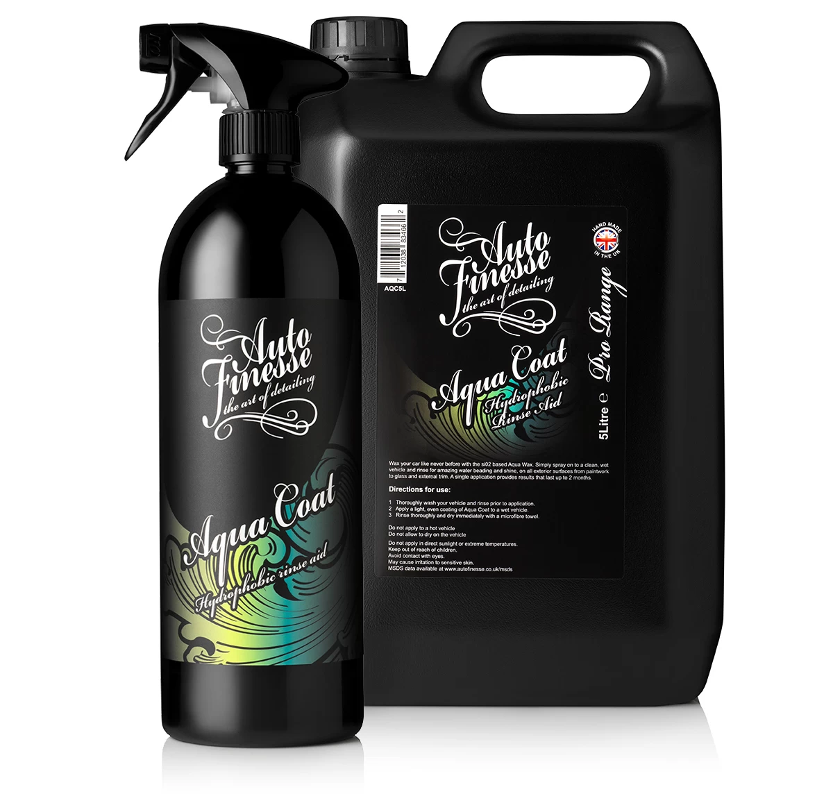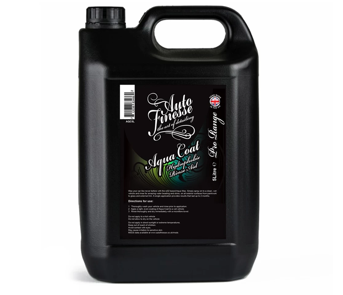 Change the way you wash your car with Auto Finesse Aqua Coat, the quick and easy way to apply long lasting protection, with enhanced water beading to all exterior surfaces. Auto Finesse Aqua Coat adds a protective layer of Si02 coating to all exterior surfaces right at the wash stage, simply wash your vehicle as normal, rinse then apply a fine mist of Aqua coat to the vehicle whilst wet, rinse once again and you will see before your very eyes the instant effects of Aqua Coats hydrophobic characteristics, that last wash after wash for up to 3 months.