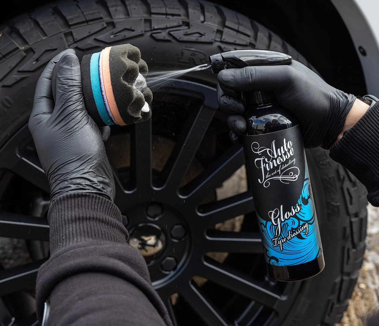 At Auto Finesse we understand that not all detailers and detailing hobbyists enjoy using a tyre gel. Tyre gels can often be dirty to use and take time to work into the tyre walls. Gloss tyre dressing eliminates the need for a tyre gel. Simply spray gloss onto the tyre wall and walk away… yes its that easy!