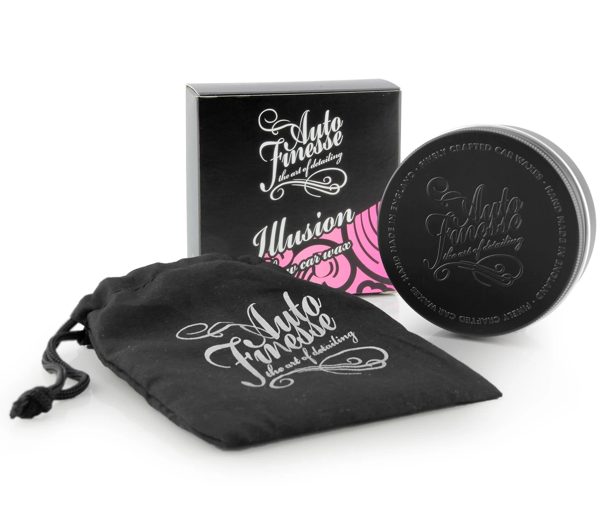 Autofinesse Illusion has (by volume) 48% T1 grade Brazilian carnauba wax, this combined with synthetic polymers and gloss intensifying oils give you paintwork with a wetness you’ll want to touch. You’ll be willing the next rain shower to come just so you can see how good the beading and sheeting is with Auto Finesse Illusion.