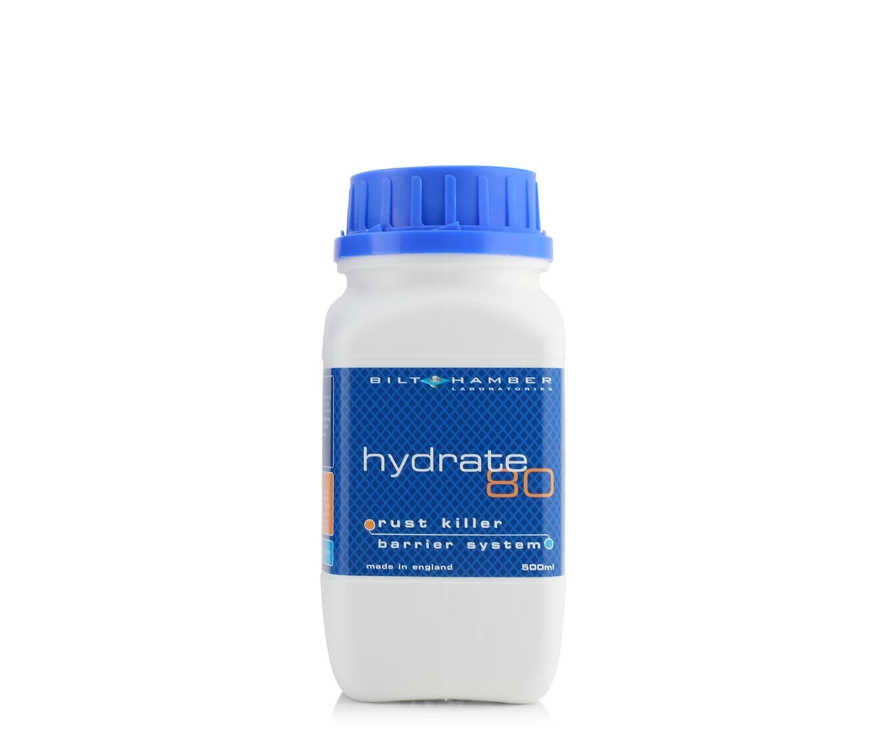 Bilt Hamber hydrate 80 was awarded “Practical Classics” magazine “Best Buy” and “Product Recommended” after a long-term trial comparing it to 12 other products – in fact hydrate 80 was applied to more heavily corroded steel than the competition and still outperformed them. hydrate 80 has been used to arrest and prevent corrosion in diverse applications – from massive marine installations to classic and historic vehicle restoration hydrate 80 provides dependable long-term protection.
