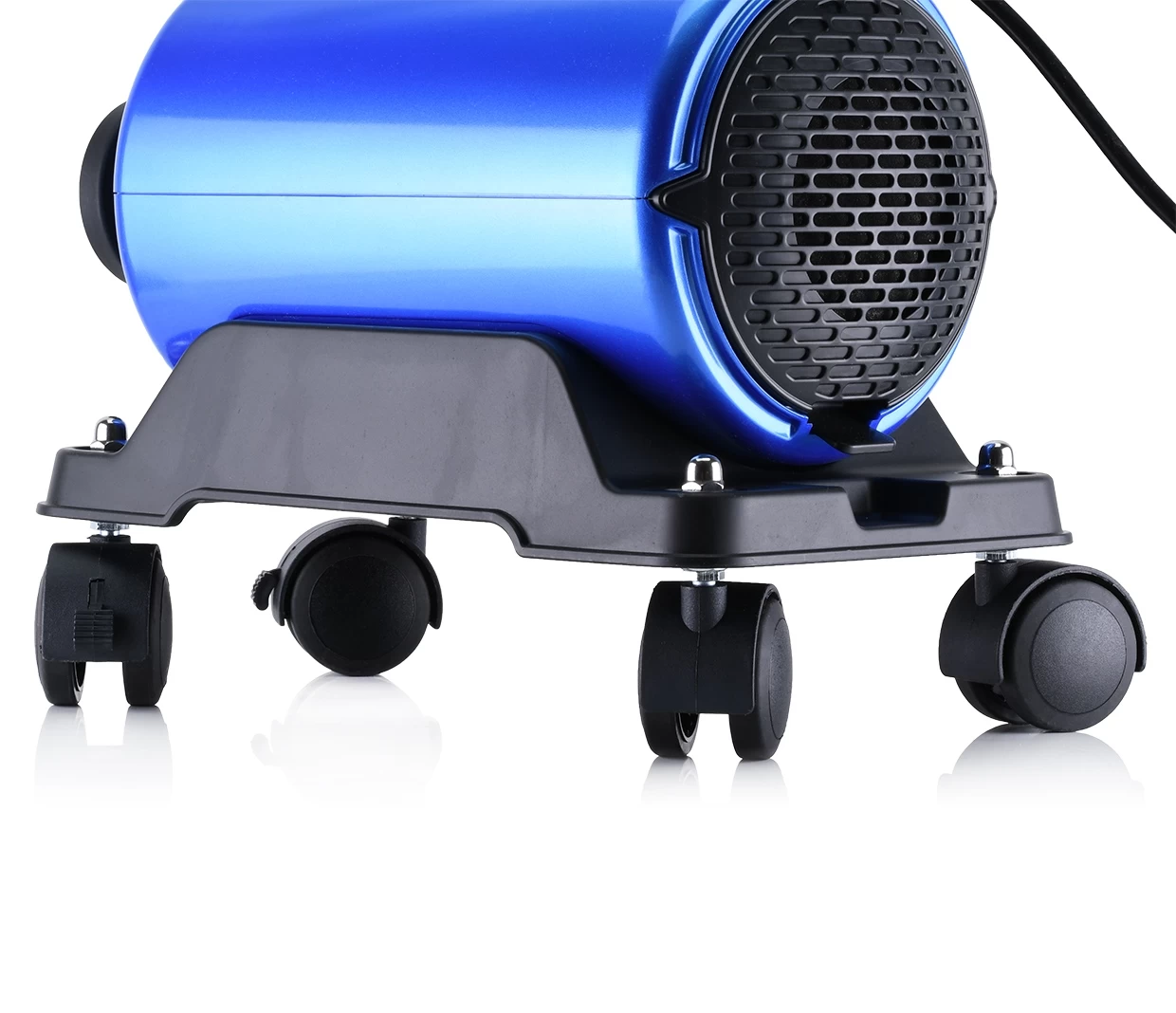 Mobilise your BLO AIR-RS Car Dryer with this wheel set. Out of the box the BLO AIR-RS comes with feet which means you have to pick the machine up to move it. This handy wheel set allows much easier movement of the blower, featuring a curved base to hold the BLO AIR-RS perfectly, castor wheels with brakes and a cut out to allow easy access to the air filter without removing the base.