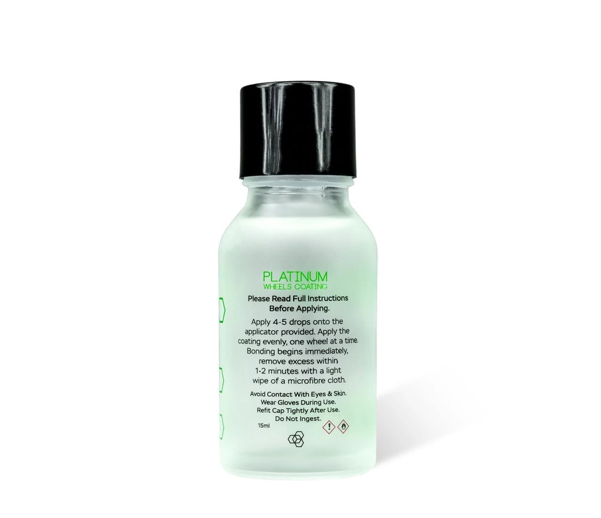 This 15ml bottle has enough product to protect 6-8 wheels (size dependant) Carbon Collective Platinum Wheels can also be used to coat metal centre caps and exhaust tips.