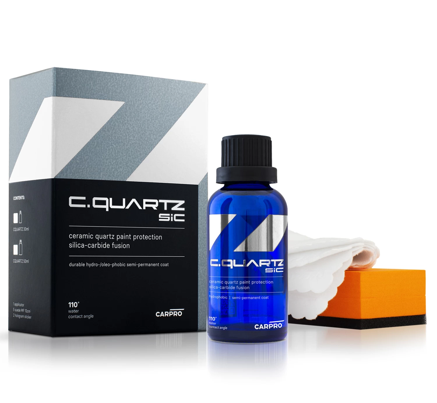 To celebrate the end of the decade and ten years of CQUARTZ, we are proud to introduce the next step in evolution. After intense research, development and testing, CarPro CQUARTZ SiC is ready to continue where TiO2 left off. As the name suggests, this new formula of CarPro SiC incorporates SiC (Silicon Carbide) for added chemical resistance.