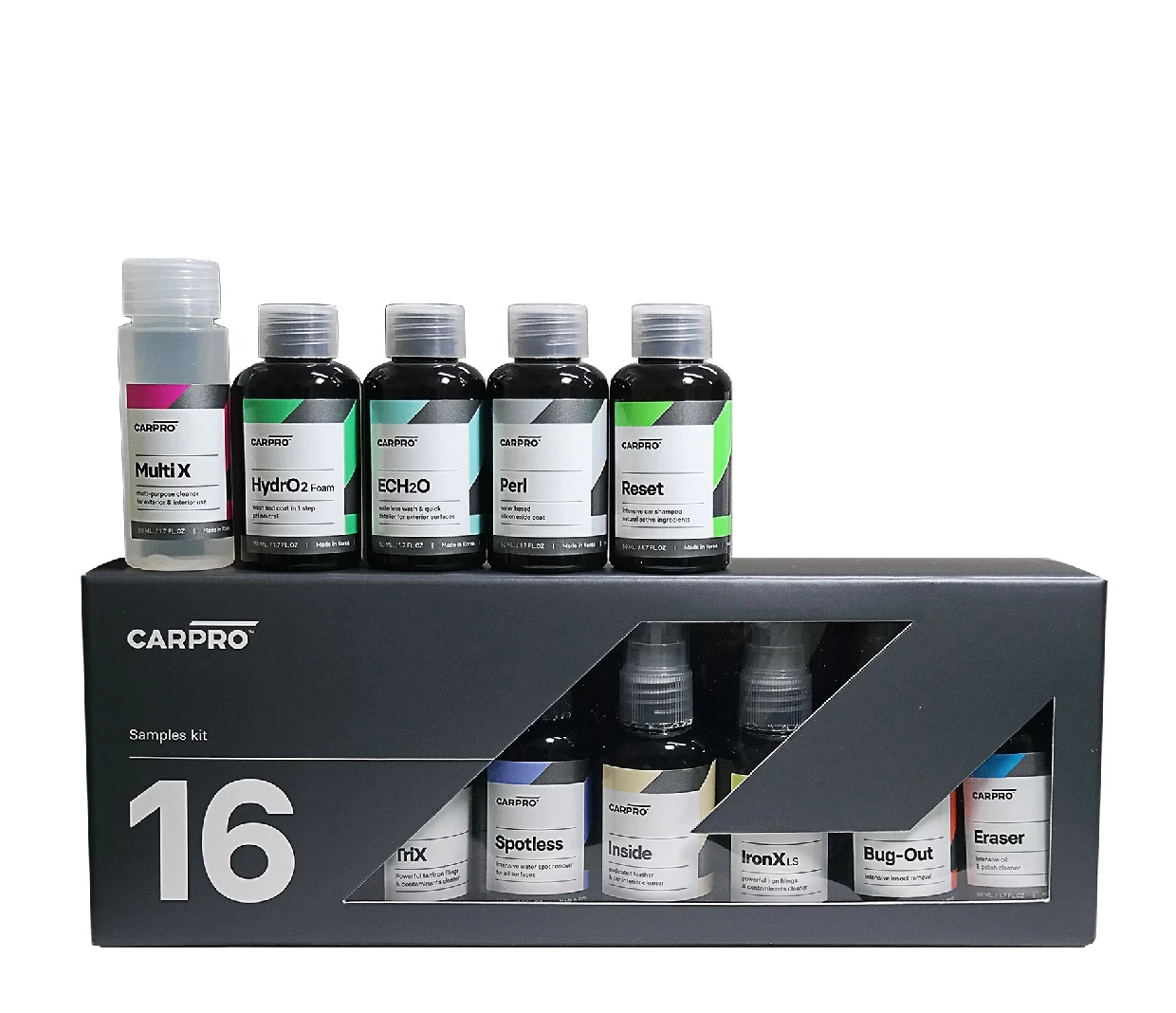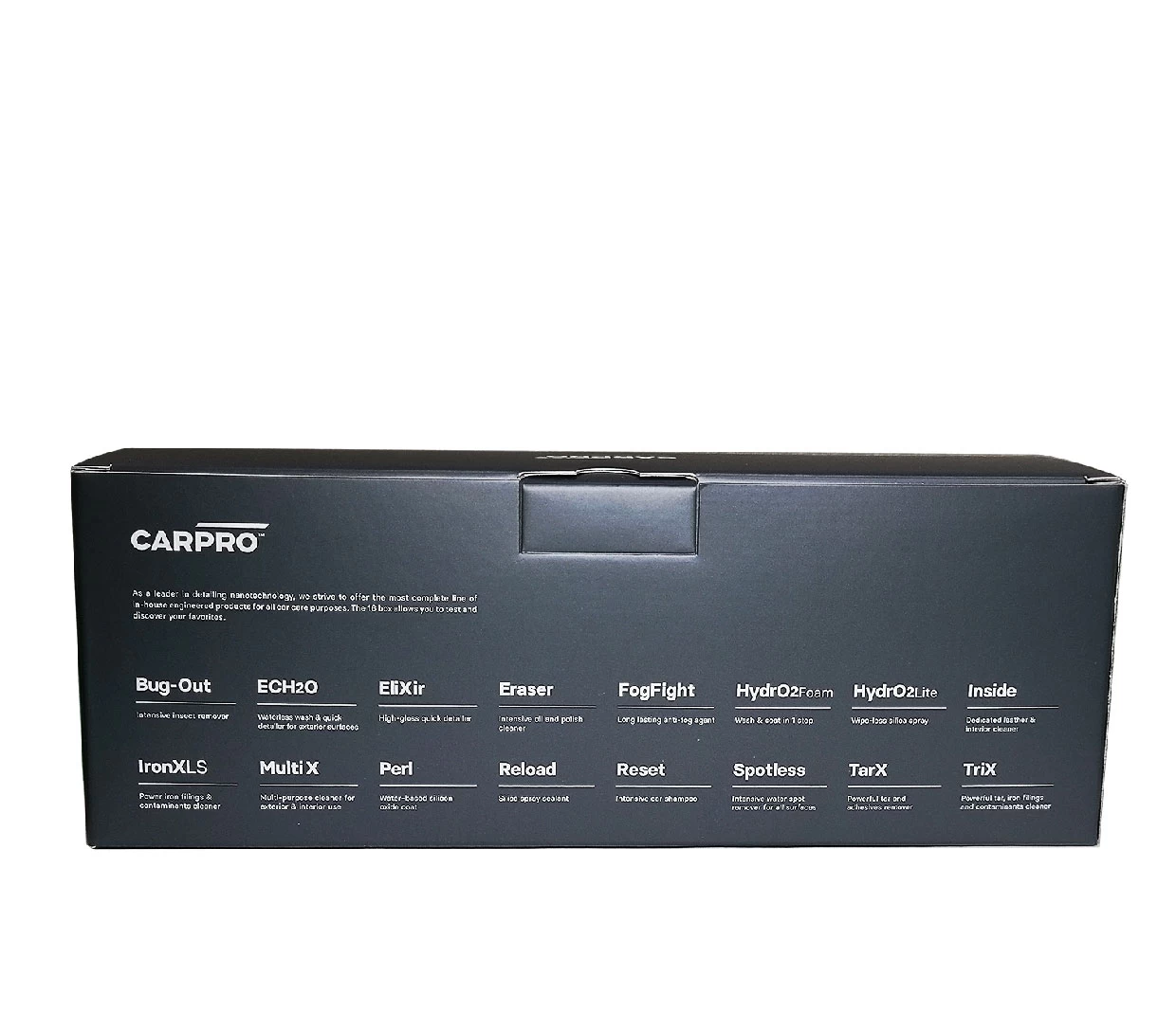 Whether you are new to detailing, or just new to CarPro this is the easiest way to try out all 16 liquid products in one handy package.