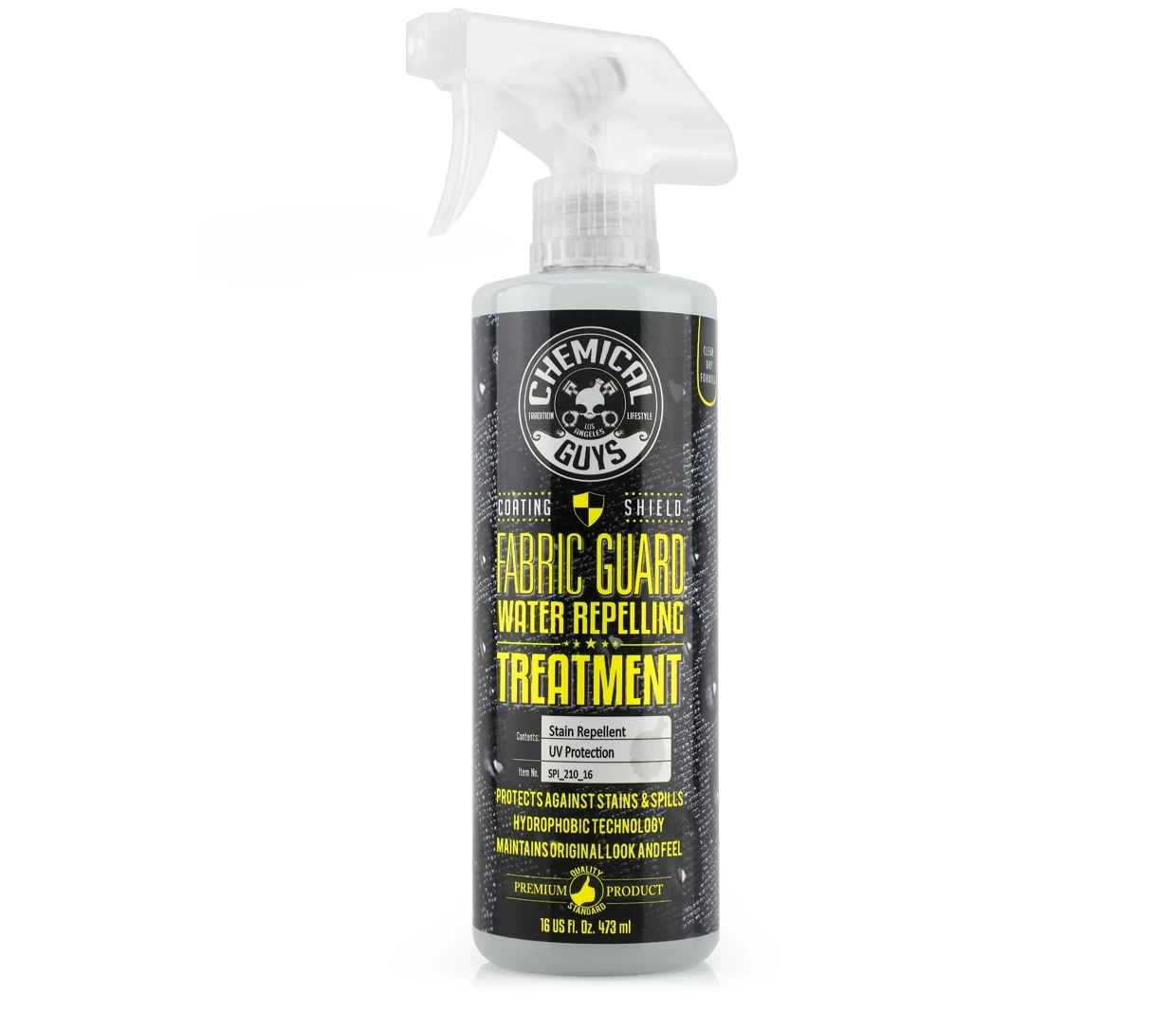Chemical Guys Fabric Guard Protectant provides a protective coating for all automotive fabrics.