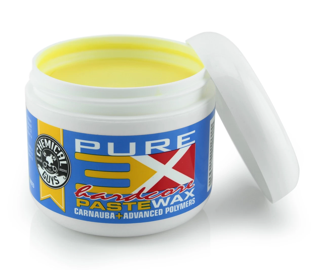 Chemical Guys XXX Hardcore Paste Wax gives a deep, shimmering wet shine and the ingredients help protect any colour paint from the elements and will act as a sun block. The wax bonds with the paint and gives a slippery, non stick protection that lasts for two to three months.