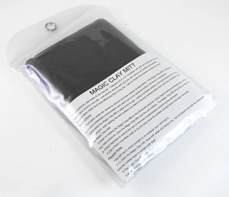 The Clay Mitt is safe and easy to use, removing paint over-spray, water spots, fresh tree sap, rail dust and other bonded surface contaminants from the surface of automotive paint, glass, mouldings and plastic.