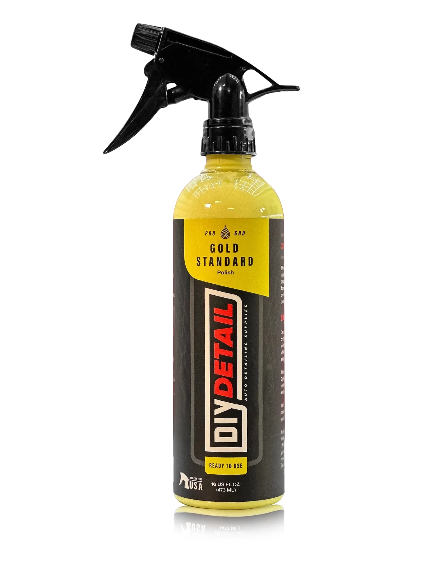 DIY Detail Gold Standard Polish will clean, renew, and protect all painted vehicle surfaces. DIY Detail Gold Standard Polish’s spray application is designed to provide proper dosing and polish distribution on the polishing pad. Spraying on the pad also reduces excessive product use. The Gold Standard Car Polish quickly and gently removes fine swirls and holograms to create a mirror like reflection on your car’s exterior. This product is safe on all glossy paints including clear coats.