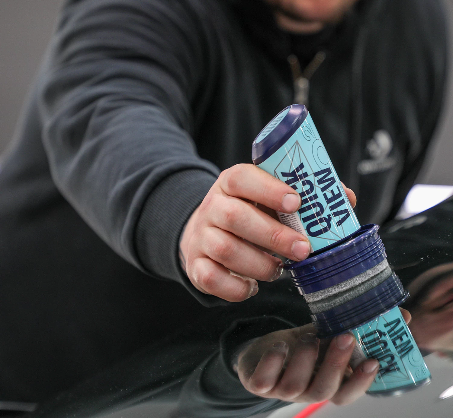 Ensure glass is clean and free of any contaminants, this makes application easier and durability better. Wash the vehicle and we recommend using a clay bar on the glass to remove any contamination. One clayed clean the glass over with Gyeon Q2M Prep to remove any oils or greases. Apply Gyeon Q² QuickView in circular motions section by section to ensure even application. Allow it to bond and dry to the surface for at least 5 minutes and then wipe down with a damp Gyeon Q2M BaldWipe.