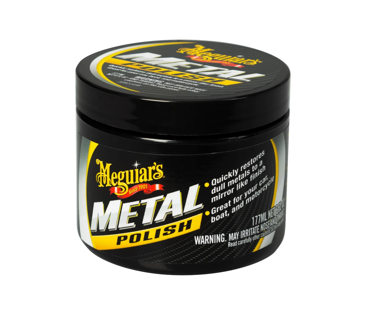 Meguiars Metal Polish will safely and effectively clean all uncoated metals, including chrome and polished aluminium. The advanced formula cleans and polishes without scratches, quickly removing oxidation, minor scratches, stains, and tarnish, leaving a mirror-like shine behind.