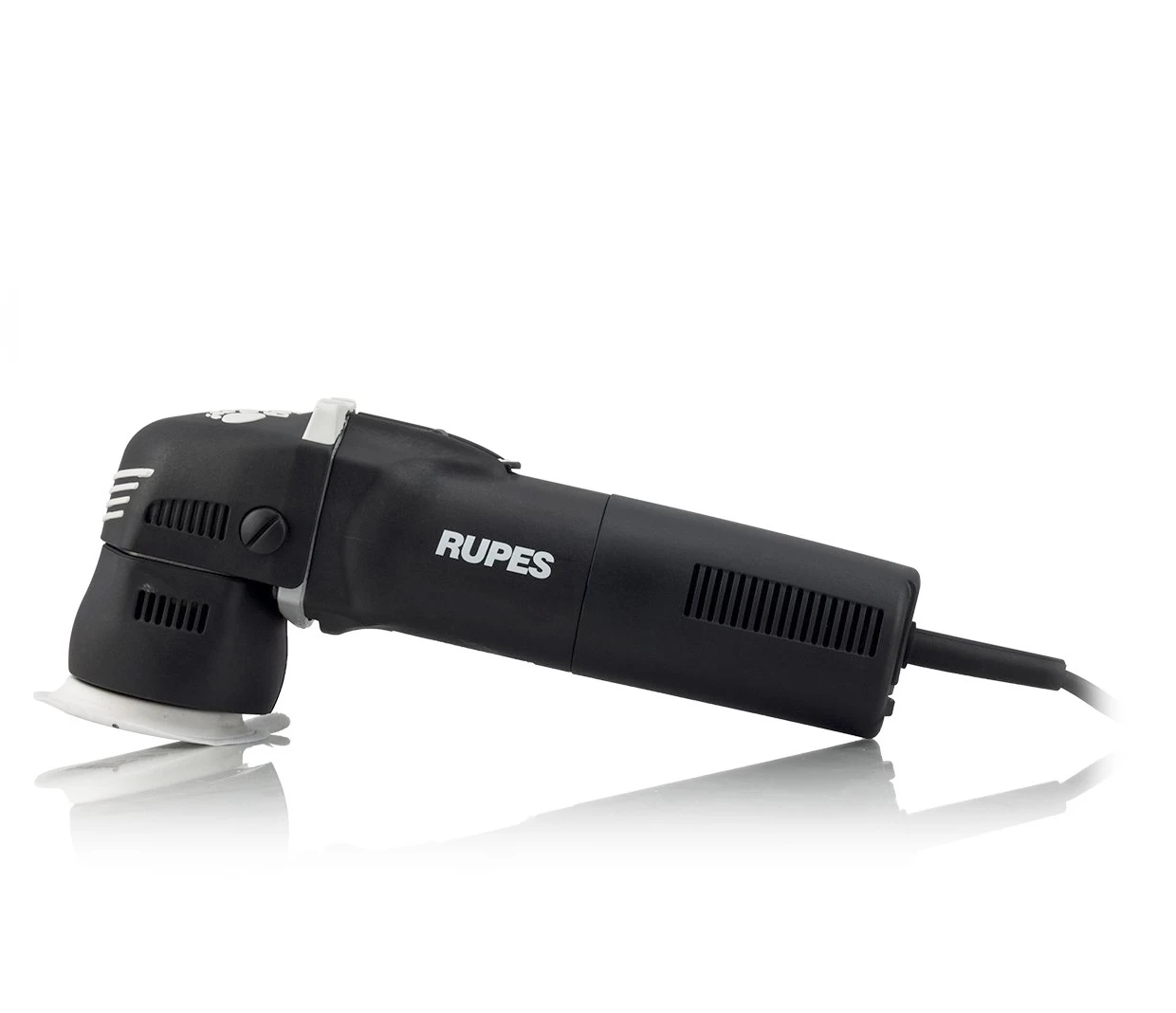 The Rupes Mini BigFoot LHR 75E is a compact dual-action machine polisher with a large 12mm throw in the orbit and a 75mm backing plate.
