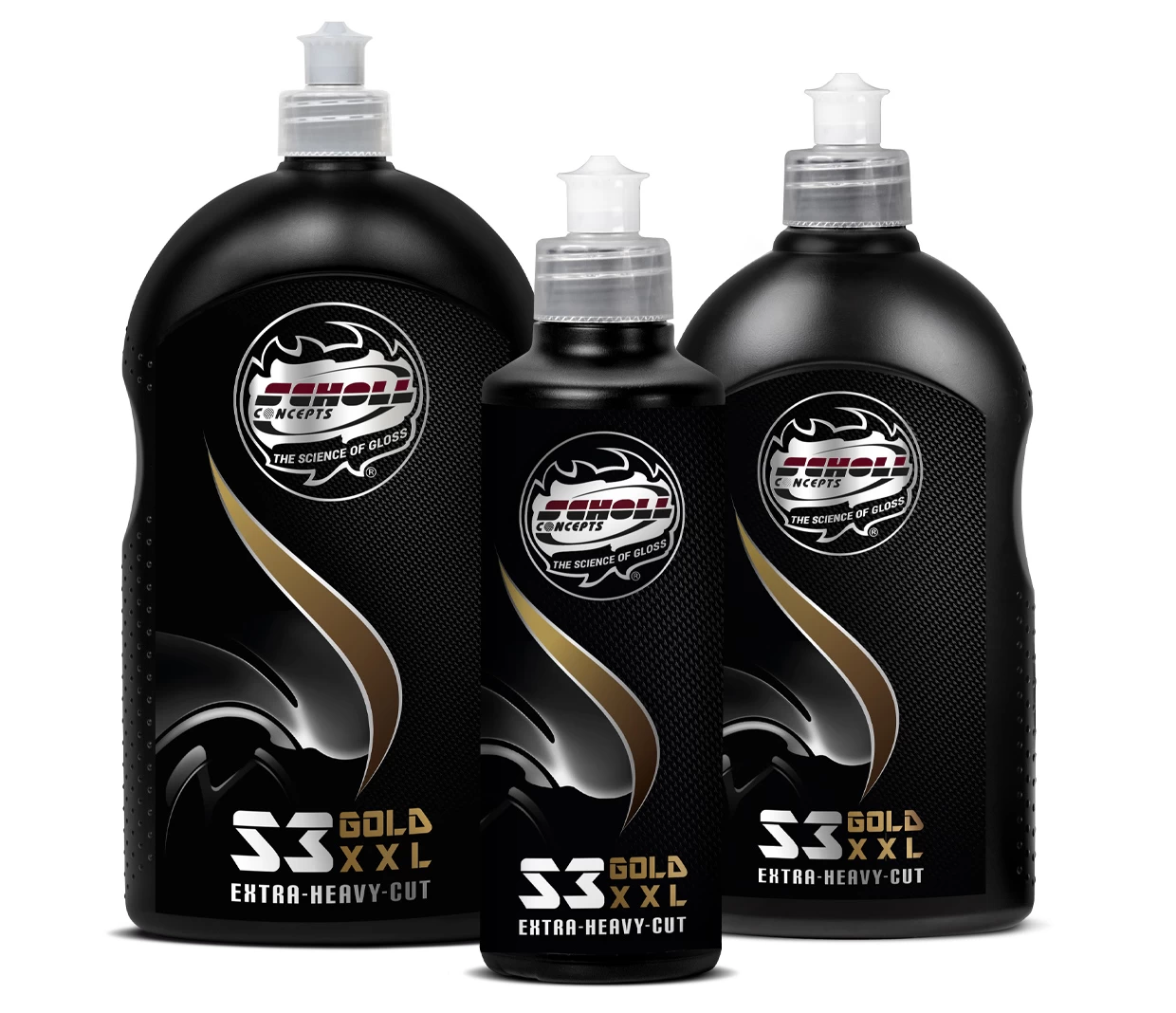 Scholl S3 XXL Gold is the fast, easy way to remove scratches, oxidation and stains. It safely restores colour and clarity, whether working by hand with a Rotary or with a DA polisher. All kinds of paint imperfections, especially on fresh paintwork, can be polished out very easily and efficiently. Due to the unique powder structure based on aluminium oxide of high purity, an outstanding gloss with one single polishing step can be achieved, even on dark colours.