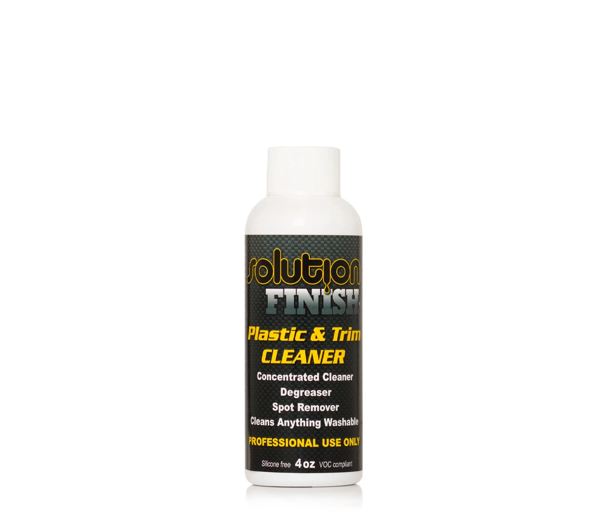 Solution finish Plastic Trim Cleaner is a super concentrated, versatile all-purpose cleaner that safely cleans your vehicles dirtiest trim surfaces. It removes old dressings and tough residues from silicone-based products. Our plastic cleaner was developed for use along with Solution Finish Trim Restorer (Black or Fusion Grey) to achieve the best possible results. It can also be used as an all-purpose cleaner on all washable surfaces. Dilute as desired to create the exact level of suds for your project!