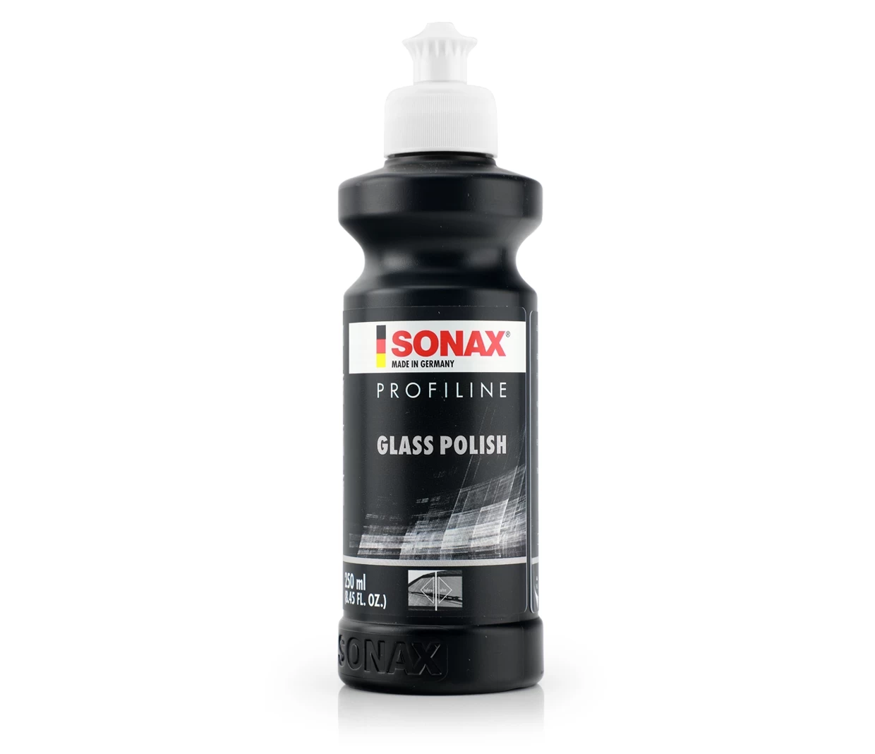 Sonax Glass polish for removing slight scratches, dull and eroded spots from vehicle windscreens and side windows made from real glass. Sonax ProfiLine utilised chemical-mechanical polishing with Ceroxid to both clean and correct glass.