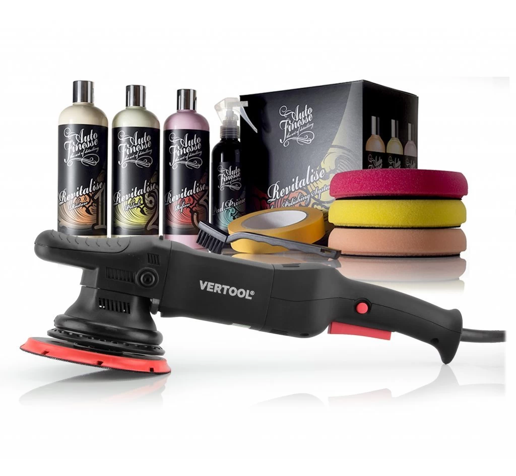 This kit combines the completely revised v2 Vertool DAS-21E Dual Action car polisher and the Auto Finesse Revitalise System.