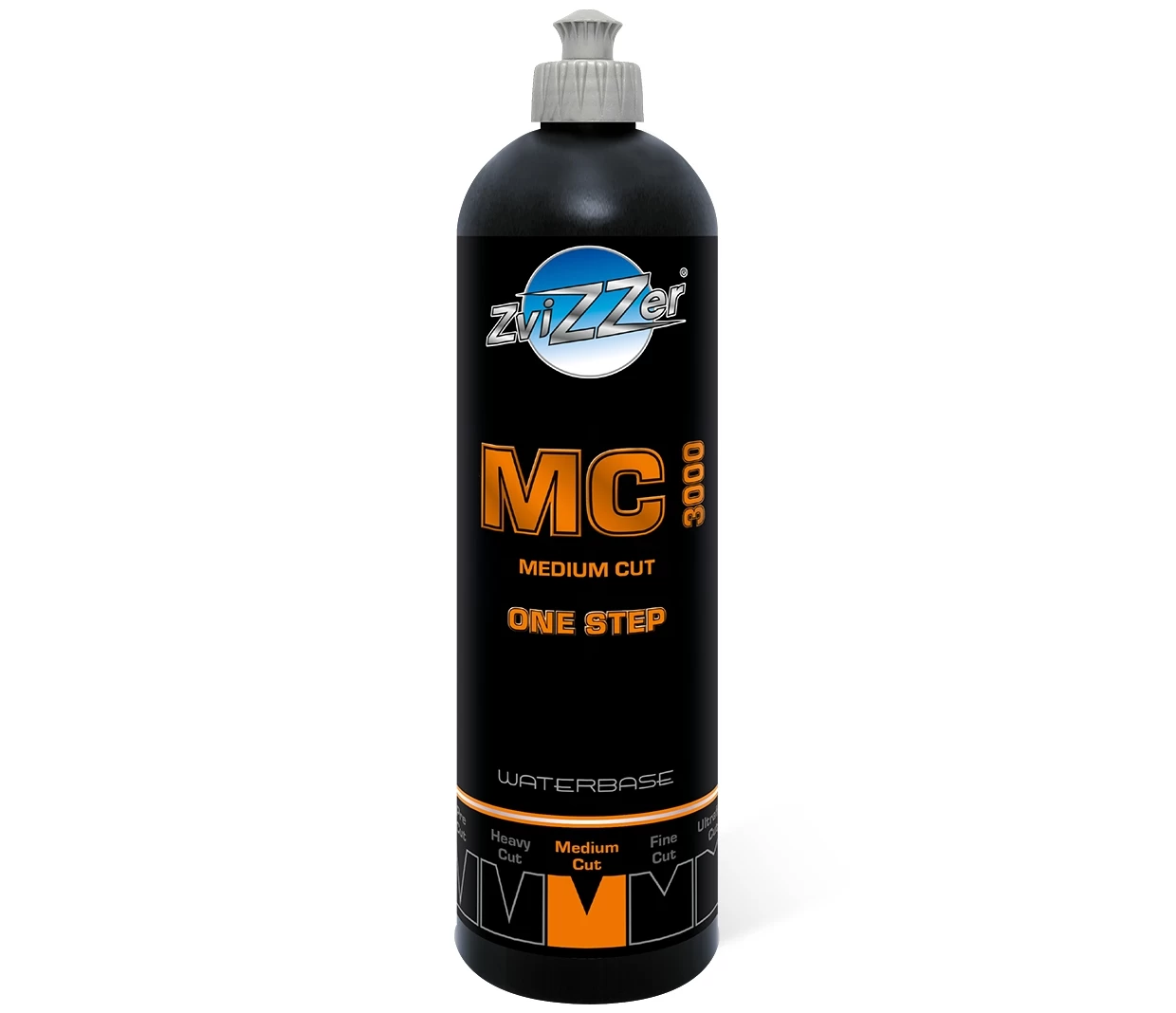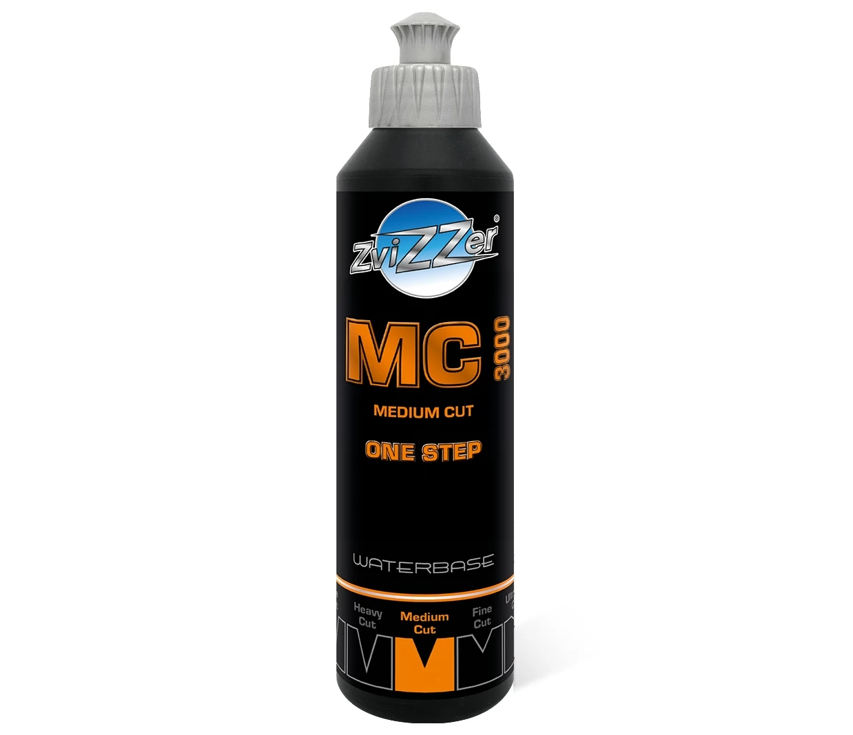 Zvizzer – MC 3000 Medium Cut is a premium One-step sanding/high gloss polish to remove fine scratches and marks from P3000 grit in one operation. Hologram free! The unique abrasive grain contained in the fine abrasive paste grinds continuously during processing so finely that, despite the high grinding performance, in only one polishing step, a perfect paint surface is achieved.